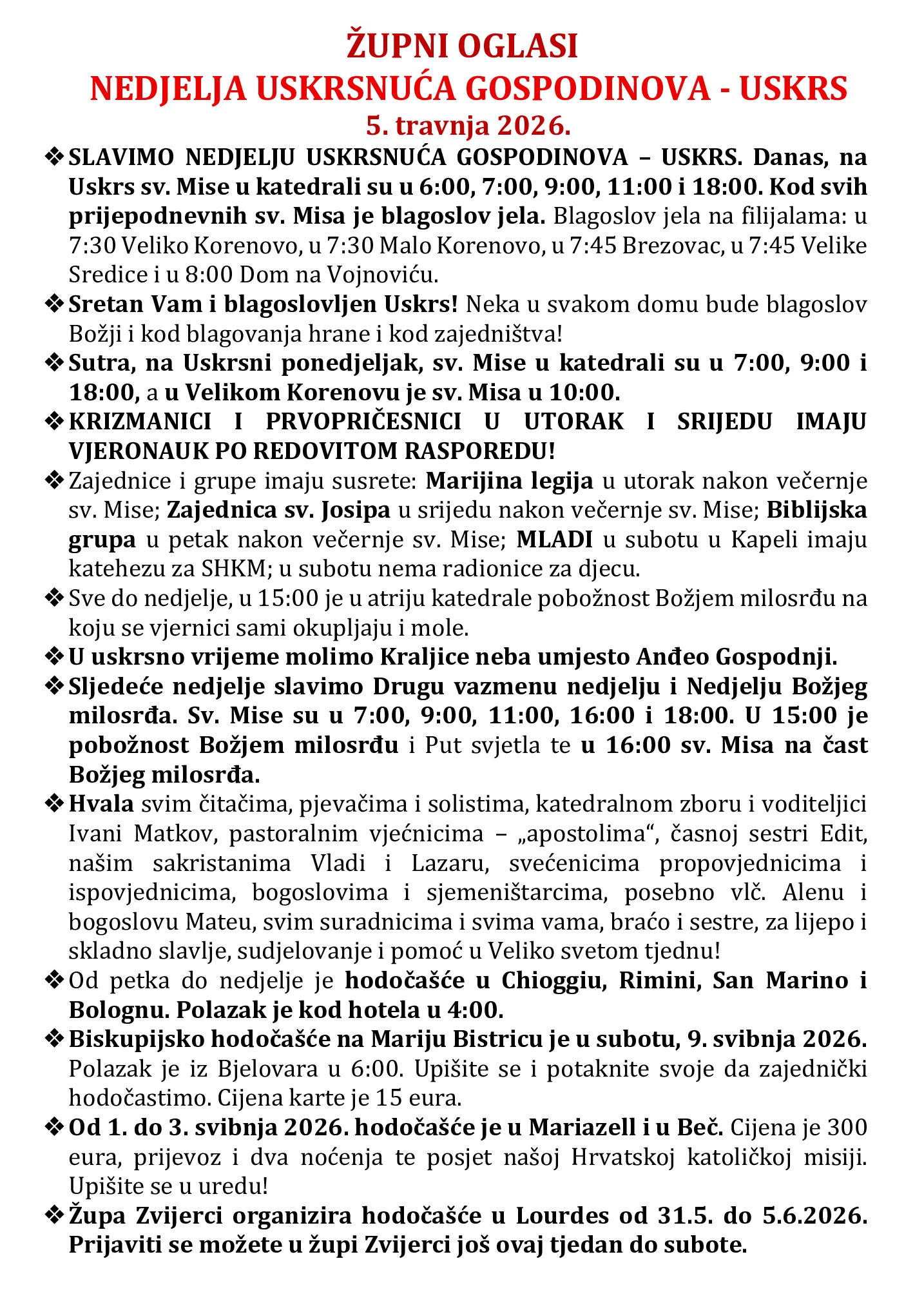 NEDJELJA USKRSNUĆA GOSPODINOVA – USKRS- 5. travnja 2026.